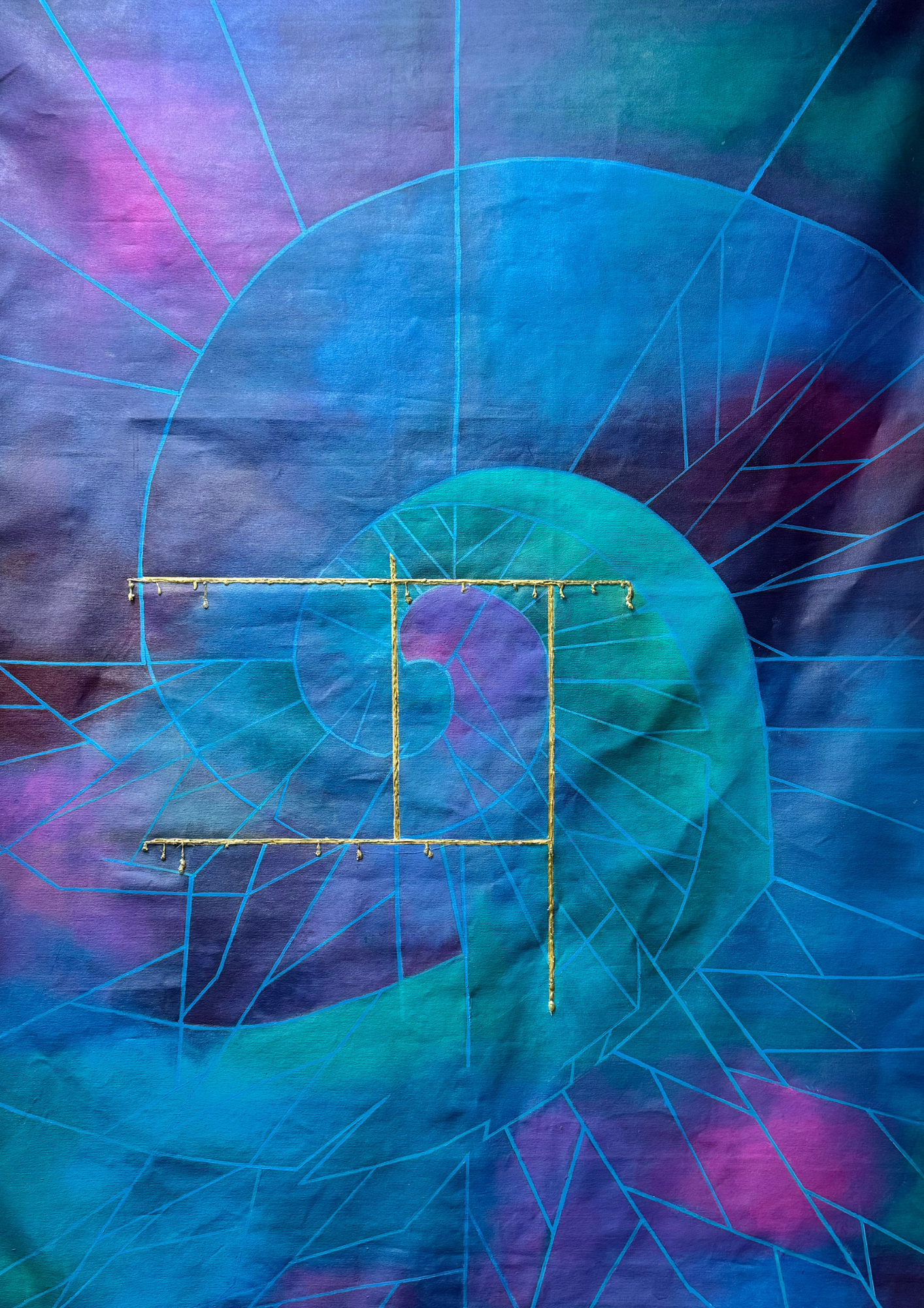 - Medium: Acrylic paint on canvas with gold embellishment